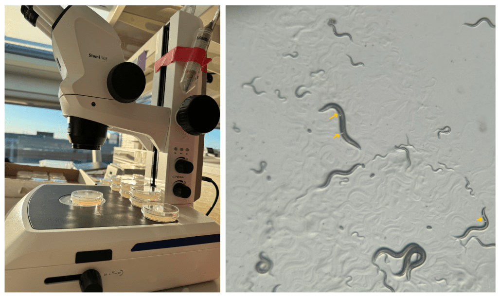 I really like this picture because, while placing the worms on the plate, I noticed that the bacterial lawn was heart-shaped. A funny coincidence was that this happened at the start of the love month – February 1, 2025.