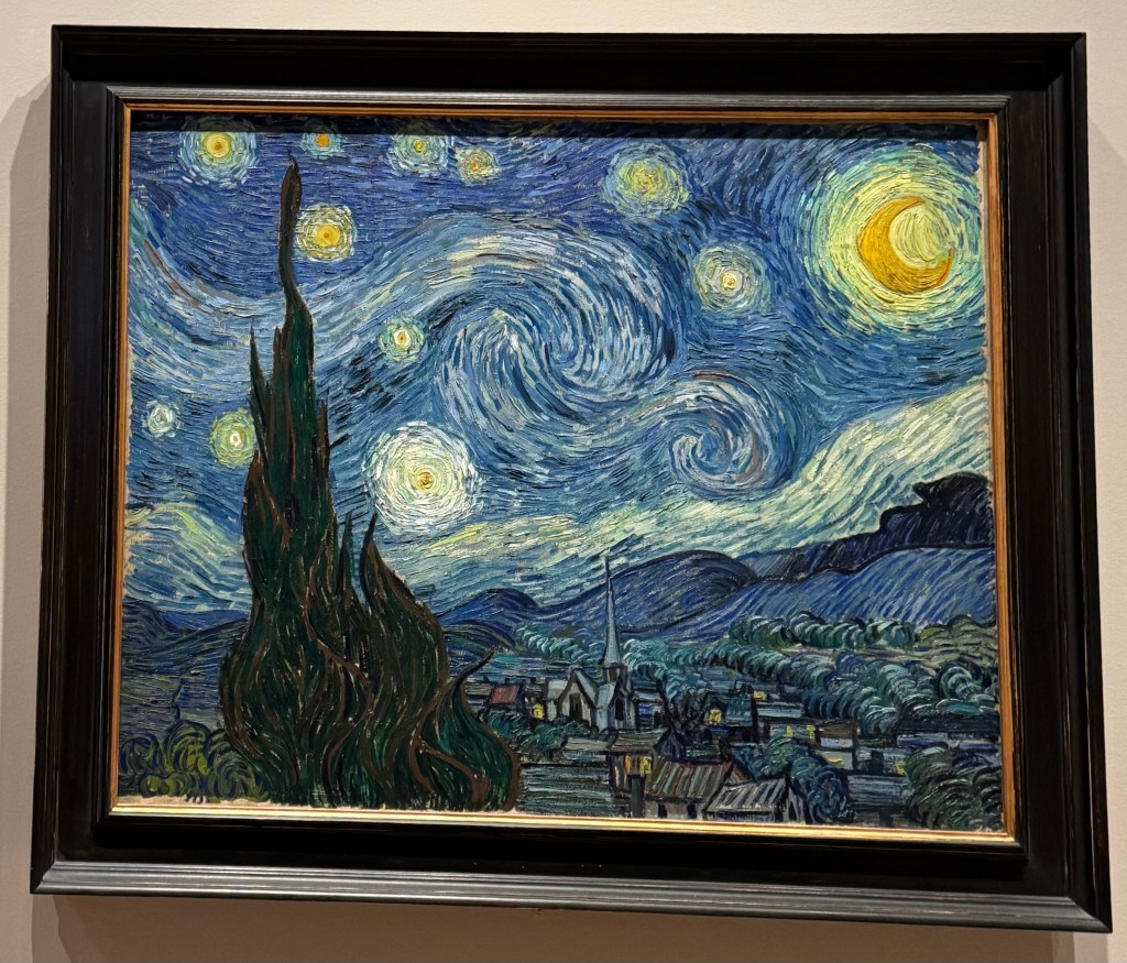 I went to MoMA and saw Van Gogh’s The Starry Night. I still haven’t been able to put into words the kind of curiosity it ignites in me. I deeply love this piece, and I feel there is – or must be – some science behind how soothing it feels. Perhaps it’s the swirling, whirlpool-like brushstrokes, though I’m not entirely sure. Maybe someday, I’ll find some answers.